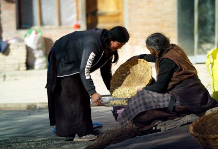一群孩子會準時來小二樓叫我,要去密林,要去山岡,要去尋找?guī)в薪?jīng)文的瑪尼石,還要去那個神秘的洞頂。比孩子們更準時的是掛在小二樓上的四個大喇叭,鳥雀剛醒來,廣播就開始了,就必須要起來了。穿過巷道,和打豆子的人們一起享受勞動的幸福。我們在一起,等待著下午的廣播,因為廣播會給我們帶來無盡的喜悅。