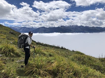 過去康定人去五色海,一般是凌晨出發(fā),帶一頓打尖(路餐)當天來回?,F(xiàn)在去五色海的徒步的常規(guī)線路有三條,:一是從公主橋沿溝進去,到達溝尾后有一小橋,過橋沿清晰線路到達泥巴山,穿過回族墓地靠小溪行進,沿途有水源保護地提示牌,找到提示牌后就算找到大路了,沿此路上到磨刀梁子再下到溝底,到達杜鵑花走廊過石橋,向上就可到達。二是州醫(yī)院二醫(yī)院公路對面徒步起點,沿大路上到磨刀梁子再下到溝底,到達杜鵑花走廊過石橋,向上就可到達。三是從新城出發(fā),經(jīng)喇嘛洞分路去到磨刀梁子再下到溝底,到達杜鵑花走廊過石橋,向上就可到達五色海。此線路坡度較緩,馬幫可行。對路線不清楚的可以去康定貢嘎國際青年旅舍前臺獲取徒步軌跡。