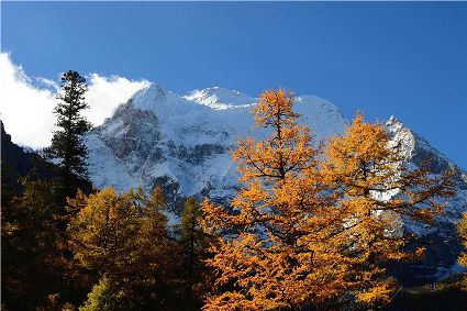 從稻城前往亞丁的路上會穿越川西風光最美的彩色林帶,領(lǐng)略神奇的四季更替;洛絨牛場上的移動牧群點綴在一片金黃之中,猶如浮動的云朵,煞是好看。
