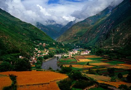 丹巴藏寨是嘉絨藏寨中最具特色的。尤以甲居、聶呷、革什扎和巴底鄉(xiāng)最為突出,冰川雪線之下,村落散布,一幢幢民居依山就勢、錯(cuò)落有致地融于自然環(huán)境中,體現(xiàn)了天人合一的理念。遠(yuǎn)遠(yuǎn)看去,充滿靈氣的山谷中,翡翠般的青草綠樹之中,是那沉甸甸的田地和隱在密林深處的寨房,伴著潺潺溪流,一幅富有動感的絕妙山寨畫卷隨之展示在你的眼前。