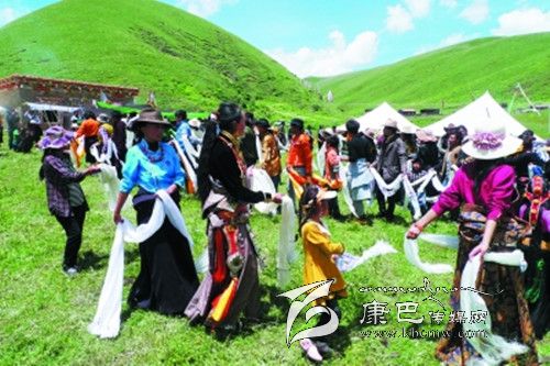 剛走進(jìn)宗塔壩子,記者便意識(shí)到一個(gè)人想象力的貧乏,現(xiàn)實(shí)中的宗塔草原以一種與眾不同的美把一個(gè)人的目光悄悄托起。四周長滿牧草的小山像溫順的花瓣,靜靜包裹著那一片平坦的壩子,如果一個(gè)人眺望的目光足夠高足夠遠(yuǎn),山和壩子的造型會(huì)讓人聯(lián)想到一朵蓮花,而壩子里小點(diǎn)般的帳篷就像一顆顆蓮子,世世代代的宗塔人便在這蓮花般盛開的天地里穿行、繁衍生息。