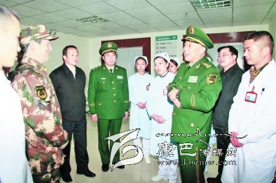 王建平在武警瀘定醫(yī)院看望慰問醫(yī)務工作者。
