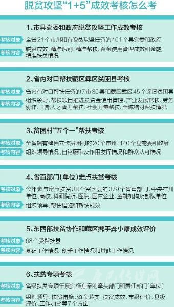 如何考?省扶貧開(kāi)發(fā)局相關(guān)負(fù)責(zé)人介紹,具體而言,就是將黨委和政府脫貧攻堅(jiān)工作成效考核、省直部門(單位)定點(diǎn)扶貧考核、扶貧專項(xiàng)考核、省內(nèi)對(duì)口幫扶藏區(qū)彝區(qū)貧困縣考核、貧困村“五個(gè)一”幫扶考核、東西部扶貧協(xié)作和藏區(qū)攜手奔小康成效評(píng)價(jià)統(tǒng)一整合為脫貧攻堅(jiān)成效考核,一支隊(duì)伍完成所有考核。