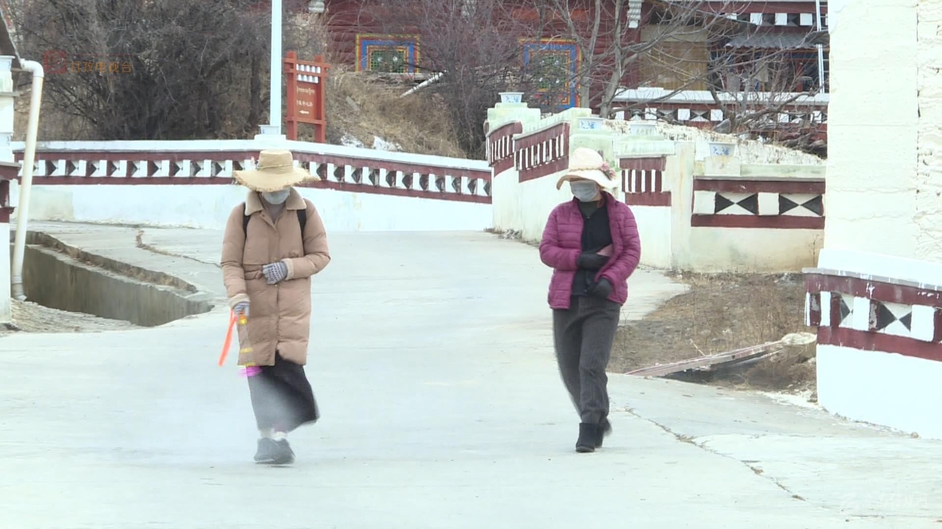 除了7個(gè)州縣級卡點(diǎn)外,在各鄉(xiāng)村同樣是嚴(yán)防死守,筑牢了嚴(yán)控疫情的第一防線。在距離縣城三公里的格西鄉(xiāng)若珠村村口,我們看到村黨支部書記澤機(jī)和村委會主任尼瑪降澤頂著寒風(fēng)依然駐守在卡點(diǎn)上。尼瑪降澤介紹說全村有65戶283人,他說支部書記負(fù)責(zé)村口卡點(diǎn)的24小時(shí)值守,其余六名村干部就負(fù)責(zé)包戶巡邏檢查,每天村里的消毒,村民的體溫監(jiān)測統(tǒng)計(jì)等等,大家都繃緊著嚴(yán)防死守這根弦。