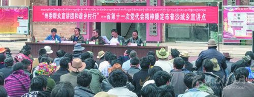 11場宣講同時在康定市魚通鄉(xiāng)、金湯鎮(zhèn)、捧塔鄉(xiāng)、麥崩鄉(xiāng)、呷巴鄉(xiāng)、甲根壩鄉(xiāng)、朋布西鄉(xiāng)、普沙絨鄉(xiāng)、南無寺、塔公寺和高爾寺展開,2000多名黨員干部、農(nóng)牧民群眾和寺廟僧尼參加了聆聽。