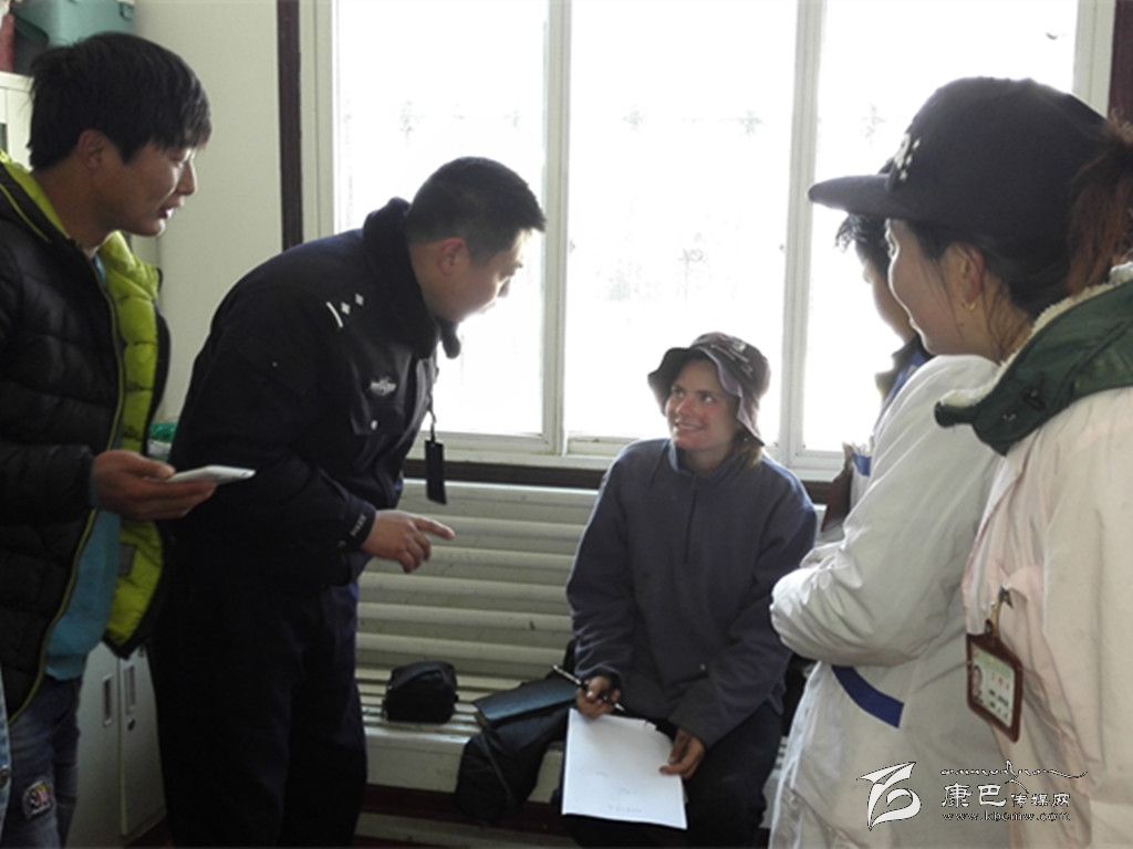 當(dāng)日中午12時(shí),開展完“結(jié)對認(rèn)親”工作返回桑堆鎮(zhèn)派出所集合的國保大隊(duì)民警和看守所民警,忽然看見一名神色疲憊的外國女游客推著自行車,正在派出所門前與民警比劃著什么?有一定英語基礎(chǔ)的民警見狀后圍了上去,主動給派出所民警“解圍”。但是,她說的外語并不流暢,交流起來十分困難。經(jīng)過手勢比劃,加上多方英語對話,民警得知了她是比利時(shí)人,名叫ILONA,是一名資深的騎游愛好者,已騎自行車游覽了大半個(gè)中國,準(zhǔn)備騎自行車回國。當(dāng)日正從稻城縣騎自行車出發(fā)前往理塘縣,但到了桑堆鎮(zhèn)后感覺身體難受,體力不支,難以繼續(xù)堅(jiān)持前行,就打算在當(dāng)?shù)卣乙粋€(gè)衛(wèi)生院先檢查身體。比利時(shí)人平時(shí)主要講的是法語,所以英語講起來有點(diǎn)不順暢。當(dāng)時(shí),國保大隊(duì)民警由于有其他要事在身,不得不先行離開,看守所民警蘇適英語水平不錯(cuò),便主動帶她到鎮(zhèn)衛(wèi)生院看病。