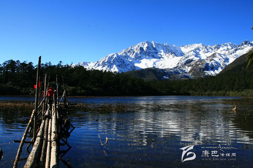 雪山不高,但山脊線波瀾起伏。這樣的雪山倒映在海子中,形成的倒影明晰、對(duì)稱(chēng)、秀麗。